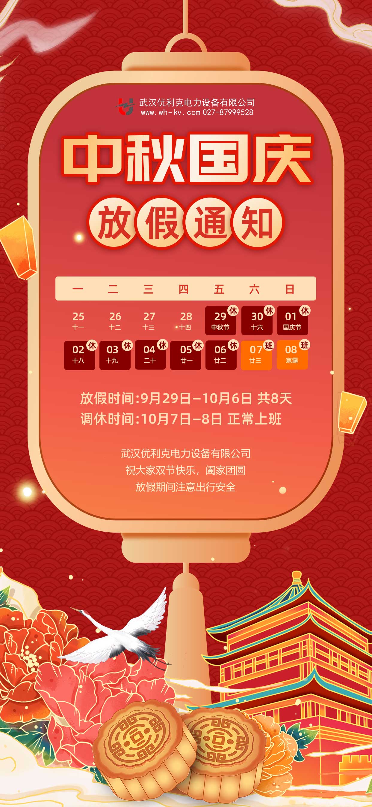 明月團欒日,闔家歡聚時!中秋/國慶佳節將至,為了讓大家享受這個特殊的雙重喜慶時刻,根據國家法定假期規定,并結合我司實際情況,現將中秋/國慶節放假相關事項通知如下: