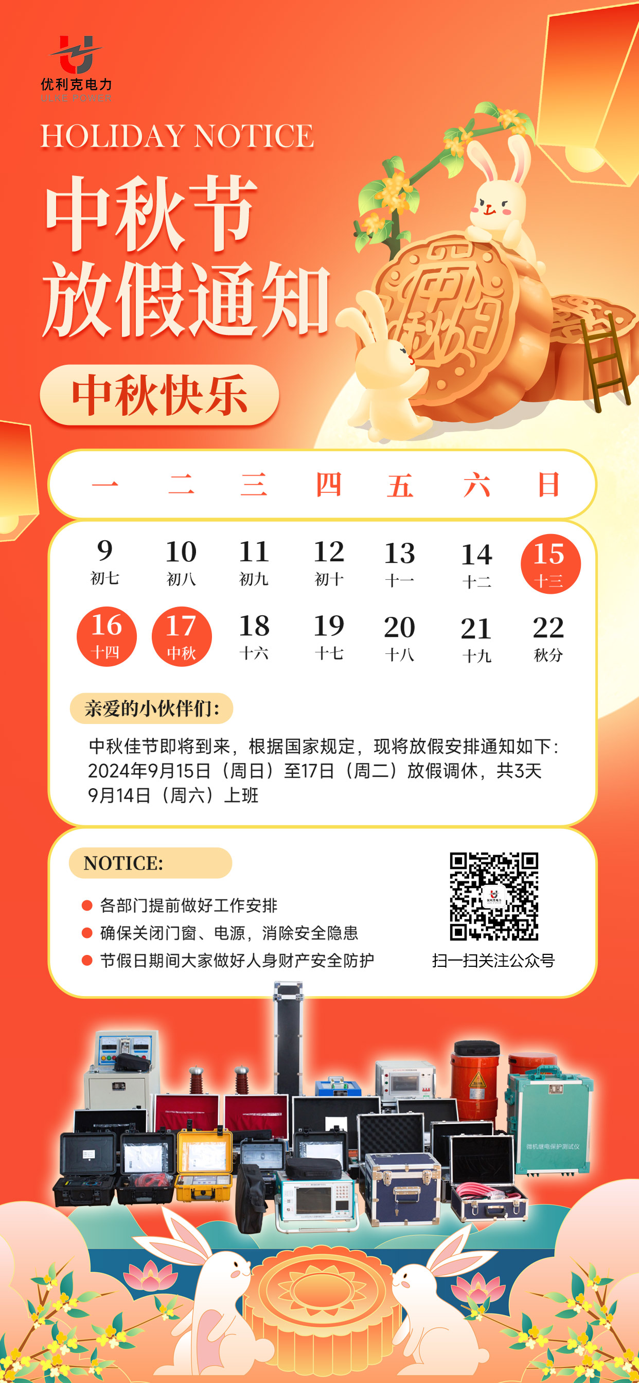 根據國家關于2024年中秋假期的具體安排,同時結合公司的實際情況,現對中秋放假時間及注意事項通知如下: